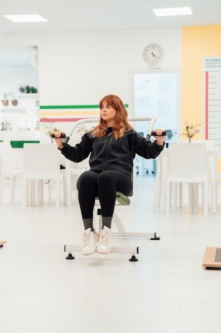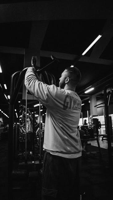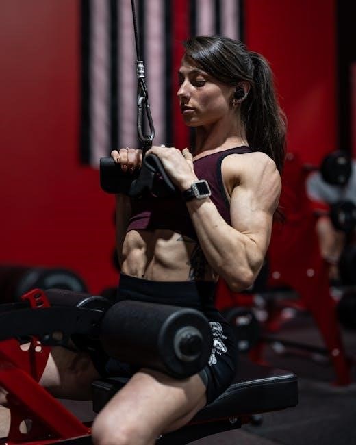 A comprehensive PDF cable machine workout routine will detail proper seated cable row form, emphasizing a neutral spine and controlled movements. The PDF stresses engaging the lats, rhomboids, and traps – key upper back muscles. Maintaining a slight lean back, keeping the back straight, and pulling with the elbows are crucial, as illustrated in the PDF.